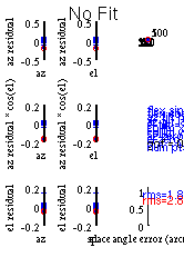 There was a problem calculating the pointingMeasured pointing crosses on 1 sources Offsets in Arcminutes Source Az: El: Azoff: Eloff: Sky_Off: VirgoA 161.9 62.5 +3.04 0.59 2.90 VirgoA 163.0 62.6 +2.10 1.63 2.62 J1230+123 168.1 63.0 +2.59 +0.64 2.61 J1230+123 169.3 63.1 +2.82 +0.71 2.80 VirgoA 181.7 63.4 +4.02 0.19 3.35 J1230+123 188.1 63.2 +2.82 +0.56 2.66 J1230+123 189.3 63.2 +2.78 +0.54 2.68 J0927+390 289.0 47.8 +0.06 +8.45 8.45 VirgoA 200.9 62.0 +1.99 0.63 1.55 VirgoA 202.0 61.9 +2.98 0.88 1.99 J1230+123 206.6 61.2 +1.91 +0.90 0.92 VirgoA 217.3 58.7 +1.73 -0.31 0.97 VirgoA 218.2 58.4 +2.26 0.19 0.74 J1230+123 222.7 57.0 +2.22 +0.97 2.19 VirgoA 234.2 52.1 +0.65 0.56 0.58 J1230+123 237.4 50.3 +0.35 +0.67 0.75 J1230+123 238.0 50.0 -0.32 +1.56 1.59 CygA 61.5 32.4 +2.03 -0.22 1.14 CygA 61.7 32.8 +2.15 0.08 0.44 VirgoA 246.9 43.8 -1.45 0.44 1.51 CygA 65.2 40.5 +2.15 0.64 2.12 CygA 65.3 40.8 +2.46 0.49 2.50 CygA 68.3 48.8 +1.09 0.65 0.67 CygA 68.4 49.2 +0.89 1.17 1.25 CygA 69.6 53.0 +1.62 1.06 1.82 CygA 69.7 53.4 +1.18 1.06 1.58 J1720-009 174.4 50.0 -1.14 +1.22 1.65 CygA 70.7 57.2 +1.89 0.73 1.65 CygA 70.7 57.6 +1.25 0.85 1.04 CygA 71.6 63.7 +1.70 0.20 1.06 CygA 71.6 64.1 +0.60 0.40 0.43 CasA 39.0 34.7 -0.16 0.19 0.25 CasA 39.1 35.0 -0.13 0.24 0.27 CygA 71.1 70.3 +0.31 -0.22 0.24 CygA 71.0 70.7 +0.50 -0.23 0.23 CasA 40.1 39.3 +0.31 0.93 0.93 CasA 40.1 39.5 -0.18 0.74 0.74 CygA 66.6 76.9 +0.10 -1.29 1.29 CygA 66.1 77.3 +2.54 -1.13 1.38 CasA 40.4 43.9 +0.37 1.32 1.37 CasA 40.4 44.1 +0.39 0.76 0.85 J1720-009 224.8 40.1 -2.39 -0.43 1.82 CasA 40.0 47.2 -4.09 1.12 4.23 CygA 296.0 79.9 -4.87 -1.54 1.91 CygA 295.1 79.5 -7.35 -1.19 4.24 CygA 288.4 73.4 -11.48 0.18 4.66 J0225+621 35.4 38.9 -14.07 -4.09 7.27 J0225+621 35.5 39.1 -13.19 -3.09 3.89 TauA 270.0 36.5 -1.50 0.49 0.77 TauA 270.3 36.1 -1.21 0.42 0.42 Pointing model residuals on these sources is 1.84 arcmin Pointing model residuals low: model still good